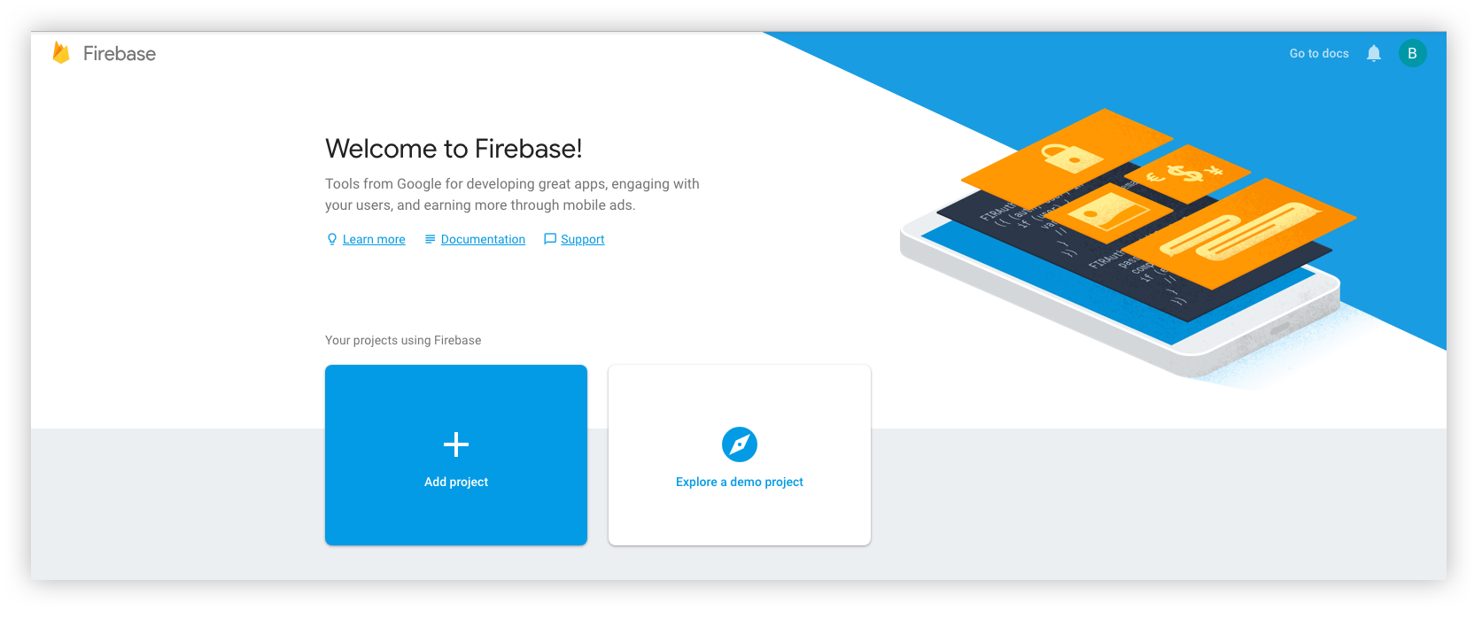 Visit Firebase Console and login/signup using your Gmail ID.